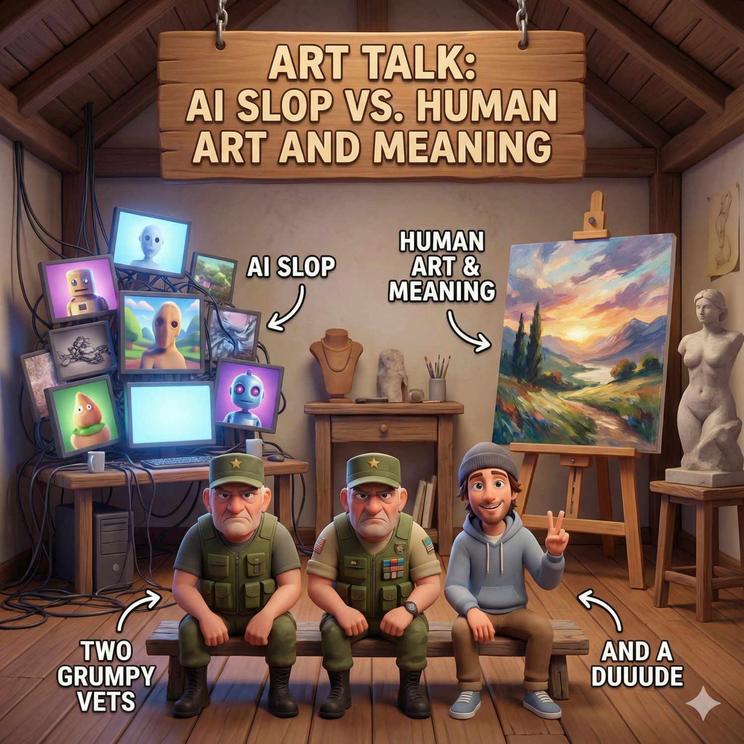 This week on Two Grumpy Vets and a Duuude, we kick off with real life updates: Rich’s MRI reveals significant shoulder tendon tears, bursitis, and pain management ups and downs, plus Bella the dog’s hilarious water-glass heist. We wander into geeking out on Linux, local AI models, audio workflows, backups, and why permissions matter—complete with a near-disaster Gmail wipe and how he recovered it. From there, we dive into a spirited, good-natured brawl over AI: art quality, “brown and muddy” palettes, hallucinations, summary collapse, and the soul of human-made art. We compare classic works like the De Witt brothers, Raft of the Medusa, and Ivan the Terrible to AI images, and debate what counts as “good art” versus useful tools. We also hit healthcare headaches in rural Oklahoma, insurance changes, pharmaceutical incentives, and the cost-of-living contrasts with manufacturing abroad. Rounding out the hour: drones and looming DJI restrictions in the U.S., staking Solana on-chain and APY realities, chess at the VA soldiers’ home as a way to give back, and a nostalgic first Christmas tree in decades—complete with vintage bubble lights. We close with value-for-value: share the show, send us feedback, and keep the conversations rolling.Email Us:Rich -- mailto://rchelson@gmail.comBryan -- mailto://circlecast@gmail.com If you are struggling with life please reach out to The Suicide Life Line - Dial 988The world needs you here.